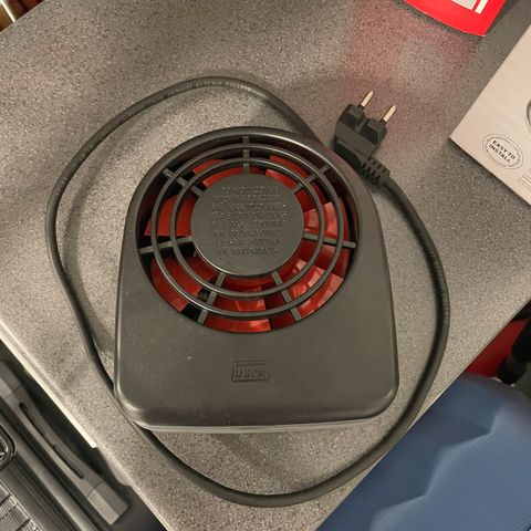 Defa auton sisätilalämmitin, kiinnityslevy ja 2,5 m. johto. Vähän käytetty ja ehjä. Tyyppinumero 430056. Teho 1400 W.