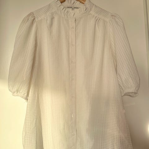 Siisti paitapusero jossa helmassa leveä taite joten voi halutessaan pitää vaikka auki topin kanssa. Puuvillaa ja koko M. Hinta 6€, noutaen.