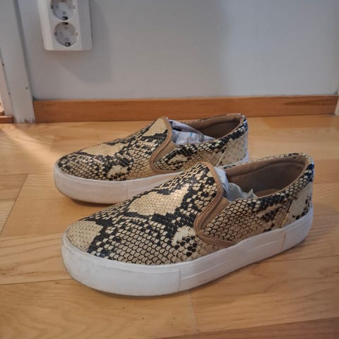 Stadiumista ostetut uudenveroiset kahdesti jalassa olleet tennarit kokoa 38. Sopivat hyvin reissukengiksi. Ovat mukavat jalassa, kevyet ja hyvin hengittävät.