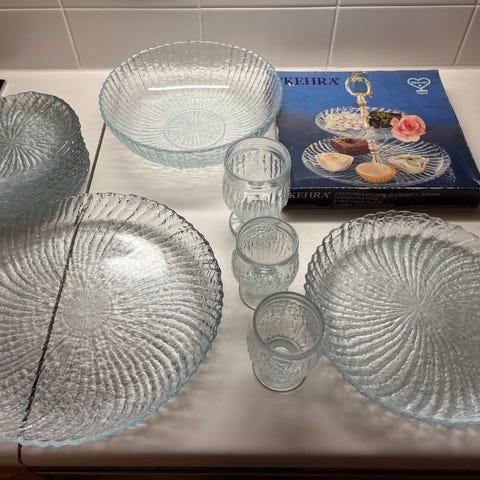 Myydään kirkasta Kehrä-sarjaa yhteensä 23 osaa pakettina (ei osia erikseen). Kuvasta on jäänyt pois 2 boolimukia, joten osia on se 23 kpl. Ovat ehjiä ja hyväkuntoisia. Nouto Espoosta (02760) tai postitus, jolloin postikulut lisätään hintaan. Voin vaihtaa tarvittaessa ToriDiiliin. MMM.