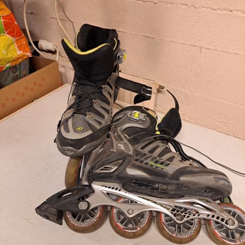 Myydään Rollerblade rullaluistimet kokoa 42. Mukana kiinni rullat 90mm 82A ja lisäksi toiset rullat 90mm 84A laakereineen. Mukaan vielä polvisuojat. Rullaluistimet, Rollerblade.
