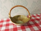 Kupittaan savi kulho 1960 luvulta rottinkikahvalla oikein hyvä