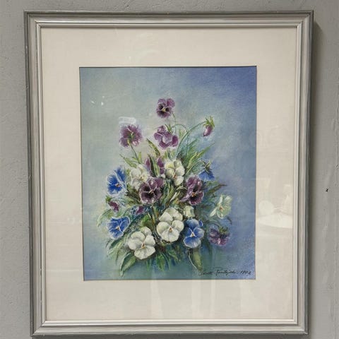 Taiteilija Wäinö Rajala kukkataulu kehyksellä myynnissä