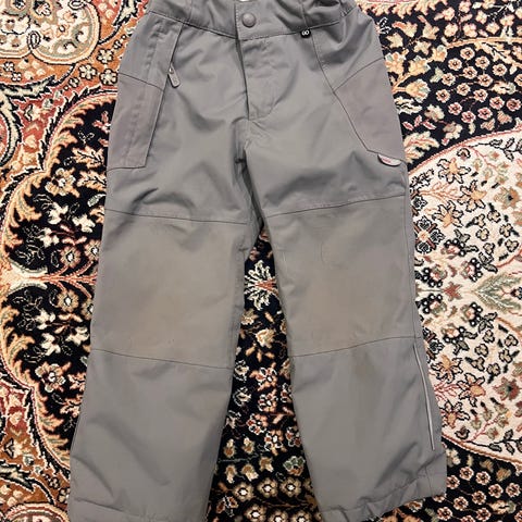 Yleisilme ihan siisti mutta tarkemmalla syynilla polvissa on kulumaa, toinen lahje kantapään puolelta rispaantunut, peffa ihan ok, joku naarmu siinäkin erottuu. Tuulen pitävät varmasti, viime syksynä kosteallakin ilmalla lapsi pysyi kuivana.