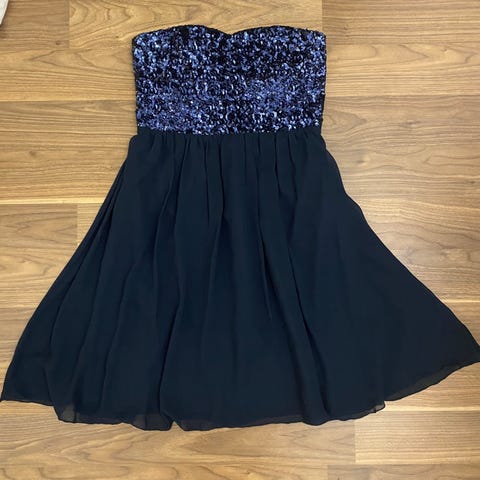 Myydään kaunis sinivalkoinen mekko, koko M. Valmistettu puuvillasta, ja sisällä on vuori mukavuuden takaamiseksi. Mekossa on käytännölliset sivutaskut ja vetoketju selässä.