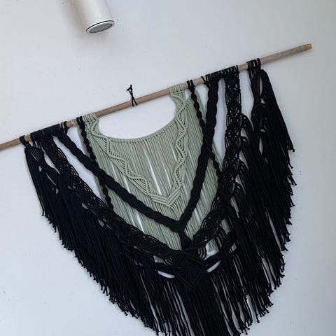 Uusi kotimaisena käsityönä valmistettu makramee seinävaate. Mitat 85*65 cm.
