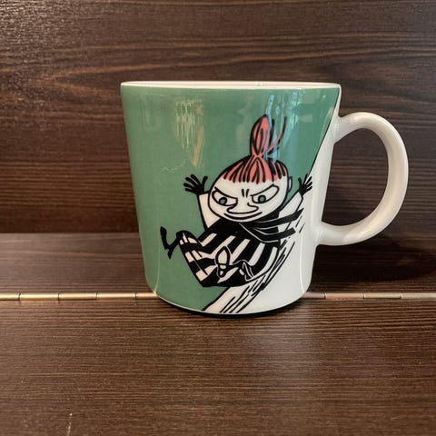 Myydään vihreä pikku Myy liukumäessä muki ( vanhempi valmistuserä)