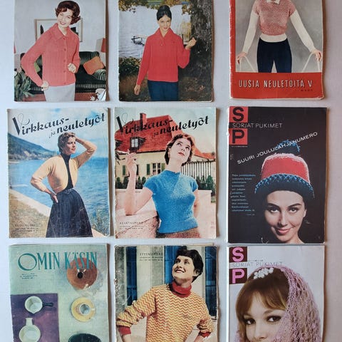 Hyväkuntoiset vanhat käsityölehdet. Pahimmat viat näkyvät kuvissa.