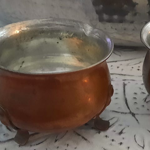Astia pituus n 29,5 cm, Astian päissä lenkit ja lenkkien kanssa koko pituus 34 cm, leveys 9 cm. Korkeus 7 cm. Ostettu 90-luvulla, jolloin uustuotantoa. Saumaosassa hieman tummaa joissain kohtaa, esim kuvassa alhaalla oikealla, näkynee kuvassa.