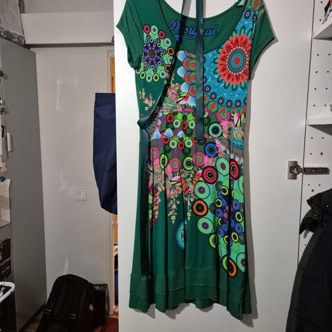 Myydään itse ommeltu viskoosimekko. Mekko on linjakas, mutta sujahtaa päälle ilman vetoketjua. Mekko on hiukan ahdas itselleni rinnan kohdalta. Olen n. 160 cm ja helma on polvien alapuolella. Kangas on ihanan ohutta viskoosia ja menee kesälläkin vaikka on puolipitkät hihat.