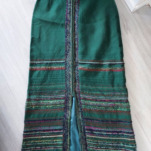 Todella siisti turkoosin värinen Arolan hame, ihanaa ohutta rypistymätöntä villaa. Hameen edessä on halkio. Hame on kokoa 36.