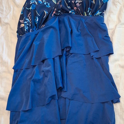 Uimahame kiinteillä housuilla 4XL. Toisin kuin kuvassa väärä koko. Kaksois helma.
