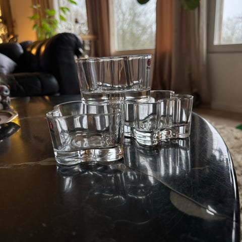 Myydään kuvien mukaisia Iittalan lasi-astioita ja kynttilänjalkoja.