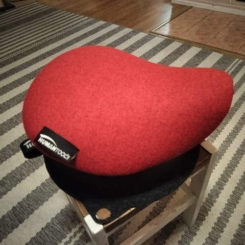 Tällä voit tavallisestakin tuolista muokata ergonomisesti toimivan työtuolin etätöihin ja saat sen helposti piiloon pois näkyvistä, kun työpäiväsi on paketissa.