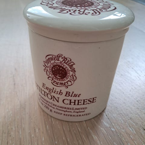 Ehjät ja siistit kannelliset, tummanvihreät Stockmann Gourmet Stiltonjuustopurkit, 2 kpl. Korkeus 9 cm, halkaisija 7,5 cm.