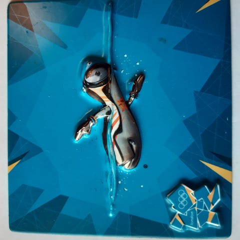 Lontoon olympialais maskotit. Alkuperäiset laput mukana vielä kiinni.