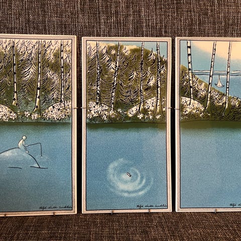 Myydään kuvien mukaiset, virheettömät Arabian Heljä Liukko-Sundströmin suunnittelemat keraamiset seinätaulut 4 kpl. Kaikki hyväkuntoisia ja ehjiä.