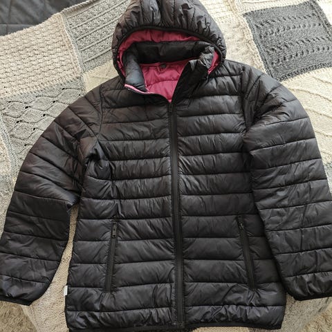 Everestin hyväkuntoinen takki välikausikeleihin. Edessä vetoketjulliset taskut. Huppu on irrotettavissa. Kangas on polyamidia ja täyte polyesteriä.