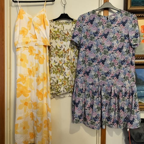 Keltainen mekko m , puuvilla 5e. Värikäs uusi mekko 44-46 . 8e