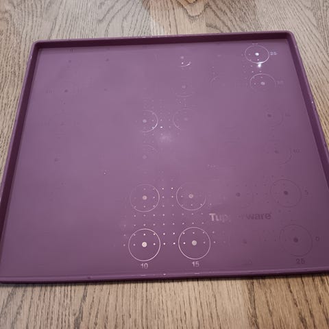 Vähän käytetty, hyväkuntoinen Tupperware leivinalusta / leivonta-alusta. Se on ollut rullalla ja siksi reunat kääntyvät, mutta suoristuvat kyllä pöydällä.