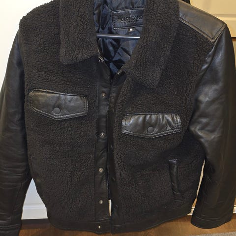 Käyttämättä jäänyt, vain vuosia kaapissa pyörinyt aito Violeta Mangon lampaannahkatakki miesten koossa S, mutta käy mallinsa puolesta myös naisille. Ollut kallis!