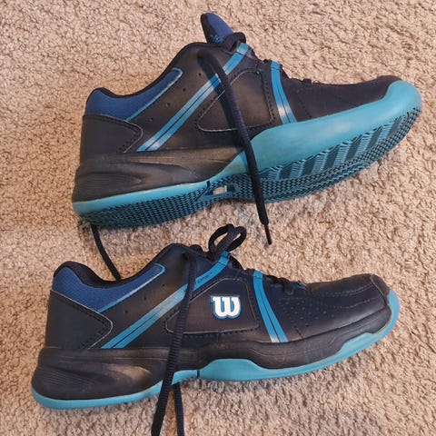 Siistit sinivalkoiset Wilsonit. Sisäpohja 26 cm ja ulkopohja 28,5 cm.
