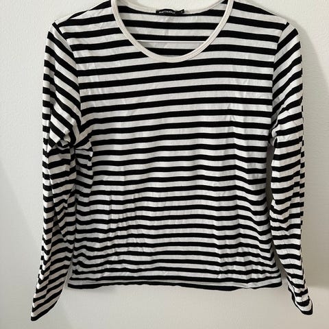 Marimekko Mika Piirainen raitapaita joka erittäin hyväkuntoinen.Olka/ helma pituus 80 cm, kainalomitta 43cm mutta kangas antaa jonkin verran periksi.