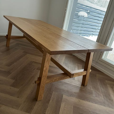 Ruokapöytä 220-320 cm tammi + marmori (oak veneer table Mellansel)