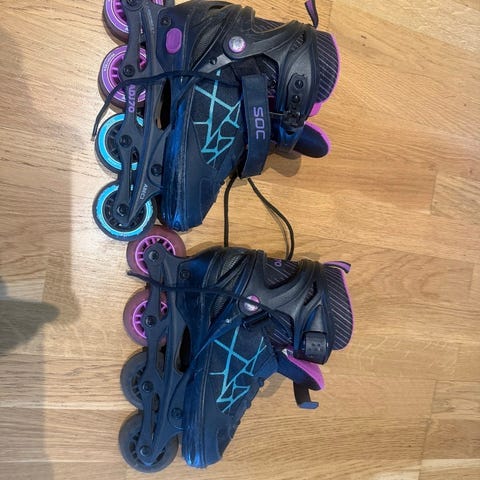 Vähällä käytöllä olleet rullaluistimet. Käytönjälkiä löytyy. Säätömahdollisuus. Koko 36.5.