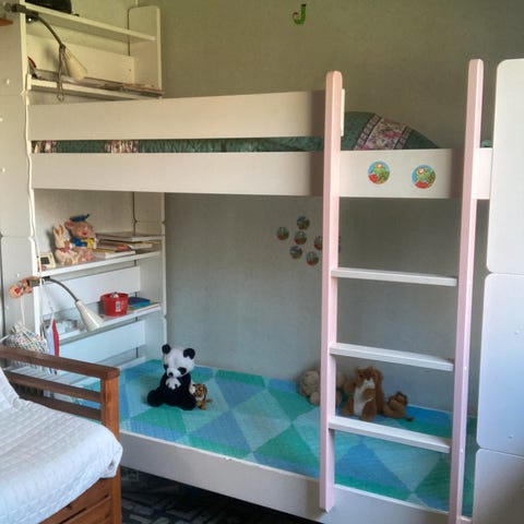 Annetaan unipuu kerrossängyn tikkaat, mallia runkolaitojen väliin tuleva, eli ei maahan asti ulottuvat.