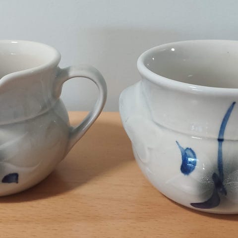 Hyväkuntoiset kermakko ja sokerikko Kermansavelta, Siniperho. Hp 25e.