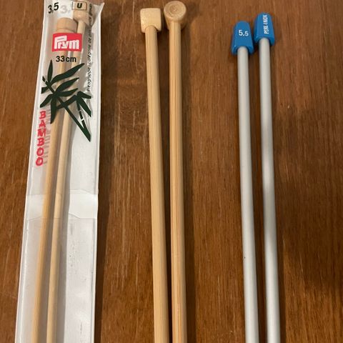 Sekalainen määrä erikokoisia neulepuikkoja, ei sukkapuikkoja. Koot numerosta 2 numeroon 5