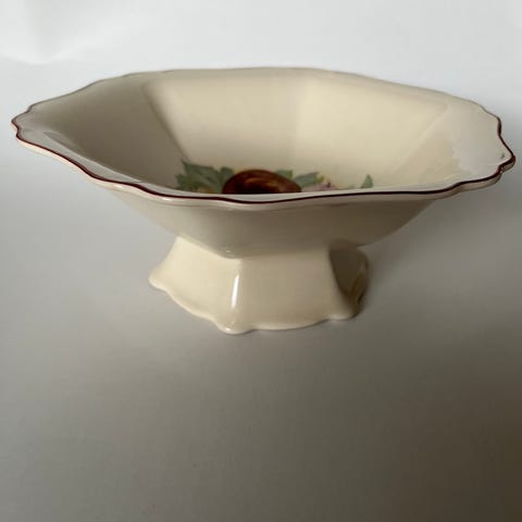Vetoisuus 2 litraa. Ollut tuotannossa 1932-1949 Arabia Harmaita kukkia. Onko tämä soppakulho vaiko perunoita pidetty. Sitä en tiedä. Täysin ehjä ja upea kuntoinen tuohon ikään. Kaunis astia käyttöön tai sisustukseen. Itsellä ollut vain vitriinissä katseltavana.
