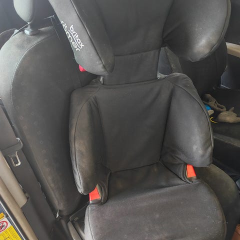 Britax Teo-way Elite turvaistuin. Kuvassa pölyinen, muuten asiallisessa kunnossa. Ei kolaroitu tai muuten kolhittu. Asennetaan auton turvavöihin.