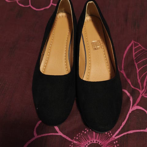 Naisten mustat nahka avokkaat kiila pohjalla 2.5 cm, koko G 7 sisä pohjan pituus 25,5 cm.
