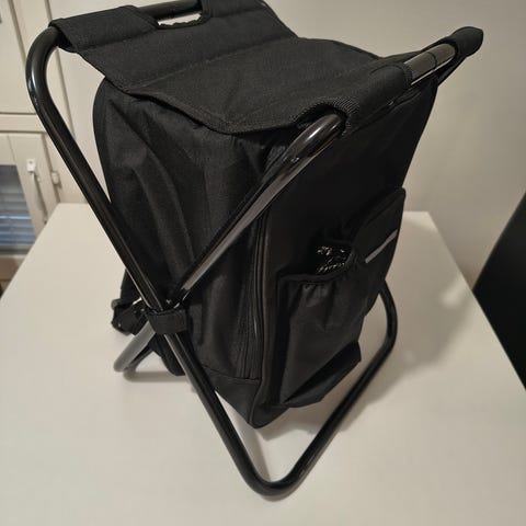 Kuvan mukainen vihreä pilkkireppu. Repussa on reikiä muutamassa kohdassa ja haisee hieman. Mitat kuvassa.