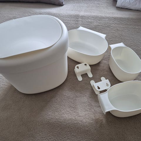 Valkoinen hoitopöytä, 4 vetolaatikkoa (ylin aukeaa vajaasti, vaatisi ehkä jonkin osan vaihdon)