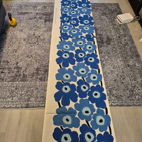 Koko 280x60, ommeltu kahdesta palasta. Työnjälki välttävä. Tuuletettu, ei pesty. Jotain voi olla. 70e