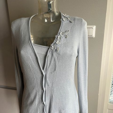 Villapaita ESCADA EY WARGARETHA LEY , koko L-XL , pituus 75 cm , hihan pituus 70 cm , leveys kainaloiden välillä 60 cm , materiaali 75% mohair ja 25% villa , pehmeä, silkkinen, ei piikikäs . Kuin uusi .