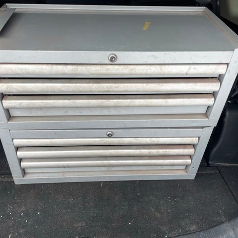 Erittäin hyvässä kunnossa oleva kannettava työkalulaatikko (BizLine) (punainen).
