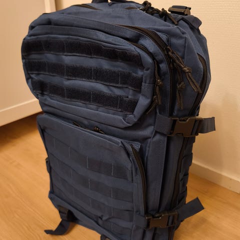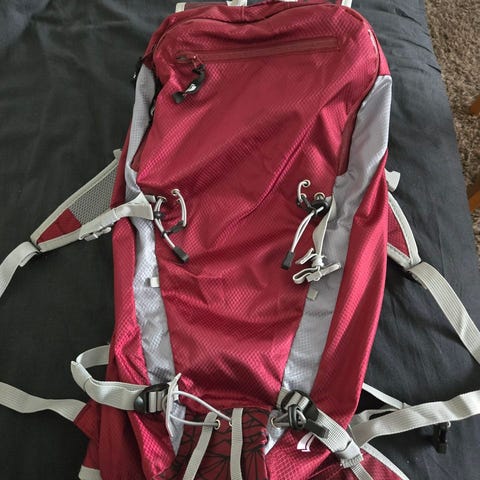 Kaksi isompaa taskua ja päällä aurinko/suojalaseille tarkoitettu vahvemnettutasku. Integroitu sadesuoja pohjassa ja mollekiinnitys mahdollisuus ulommassa taskussa. Pehmeä ja tukeva kantaa. Muutama pieni tahra repussa ja alapehmuste hieman rispaantunut, mutta se ei menoa haittaa! Linkissä video esittely repusta!