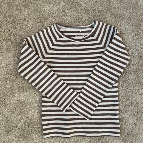 Myydään Metsolan raitapaita. Kokomerkintä 110/116cm. Vastaa mielestäni pienempää kokoa. Ostettu uutena ja ollut käytössä yhdellä lapsella harvakseltaan.