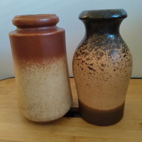 Länsisaksalaisen Scheurich Keramik -firman 1970-luvulla valmistama keramiikkamaljakko/-kannu/-ruukku "fat lava", malli 495-20. Korkeus n. 20 cm, levein kohta n. 17 cm. Väritys mattavalkoinen/ruskea/hailakka vihreä. Kannun pinnassa lainemainen kohoraita koristeraidan alareunassa (ei näy kuvassa). Ei naarmuja eikä lohkeamia.