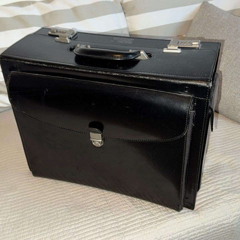 Kovapintainen ehjä siisti lentäjänlaukku, nahkaa. Merkki Tannery West. Pinnassa kulumia, kuten kuvissa näkyy. Sisällä, laukun pohjassa vuorissa joku läikkä. Pituus 45 cm syvyys 21 cm korkeus 32 cm. Lukot toimii, mutta numerokoodia ei ole tiedossa. Mieluummin nouto Helsinki