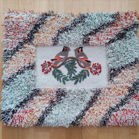 Myydään kuvanmukainen hyväkuntoinen ryijy. Siisti ja ehjä. Ollut alkuun seinällä ja nyt useamman vuoden vaatehuoneessa joten jospa löytyisi jonkun kodista seinältä paikka.