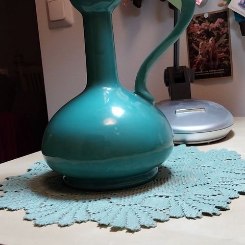 Boho-henkinen koristekannu, materiaali keramiikkaa. Korkeus 30 cm, levein kohta n. 15 cm, suuaukon halkaisija 2,5 cm. Väritys ruskean eri sävyjä. Täydellinen kunto.