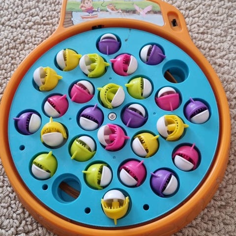 Hauska paristokäyttöinen kalastuspeli – tässä pelissä tarvitaan tarkkuutta ja nopeaa reagointia! Kalat liikkuvat ja avaavat suutaan, ole tarkka ja heitä onki sinne, missä kalat syövät! Pelissä on 15 iloisen väristä kalaa. Mukana on kaksi onkea.