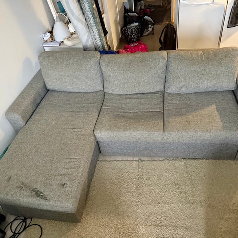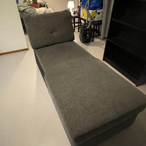 Musta divaani . Kankaat ehjät. Alapohjasta jousia irronnut eli kahdessa istuinkohdassa syvennys. Fixaajalle annetaan.