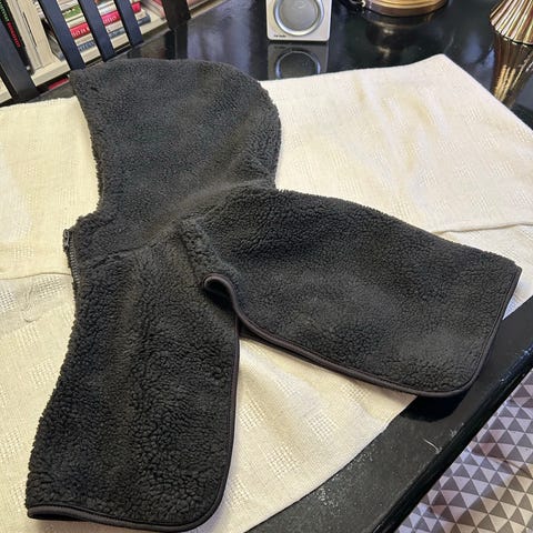 Beige fleese. Lukee 2xl mutta jos haluaa hiukan väljän niin ennemminkin L tai M. Uusi