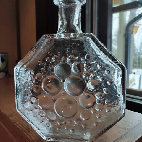 Tästä kaunis pullo esimerkiksi heinille tai valoille. Näyttävä iso vanha pullo